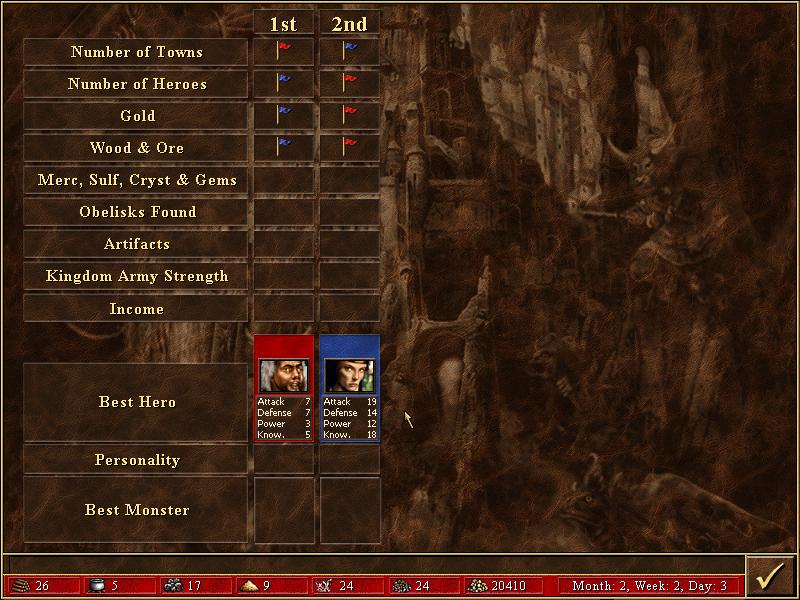 Jinak postup si rozebral dobře no, udělal sem to šikovně a ničim to postupně a že ti zabiju vše sem věděl:-) ikdybych nedostal ty morálky, zbylo mi furt 64 many!! ice bolt dával 350 damage, stál 8 many:-) ikdybych to nedostal, vyhrál bych v pohodě. za další, soupeř mi vystavil conflux hrad a asi 5 týdnů tam nevyrobil nic, krom firebirdů:-) já měl přes 30 tisíc, takže nakrásně sem mohl kráááááááááásně utéct z boje a zkoupit vše a vyrazit znova na něj:-) + sem uměl lítat a viděl hafo artů a další dračárnu, ale už sme oba chvátaly, tak sme to urychlil. A ON MI NAPISE? ZE SEM MEL STESTI:-)))) tuhle hru si nemohl vyhrát.-)