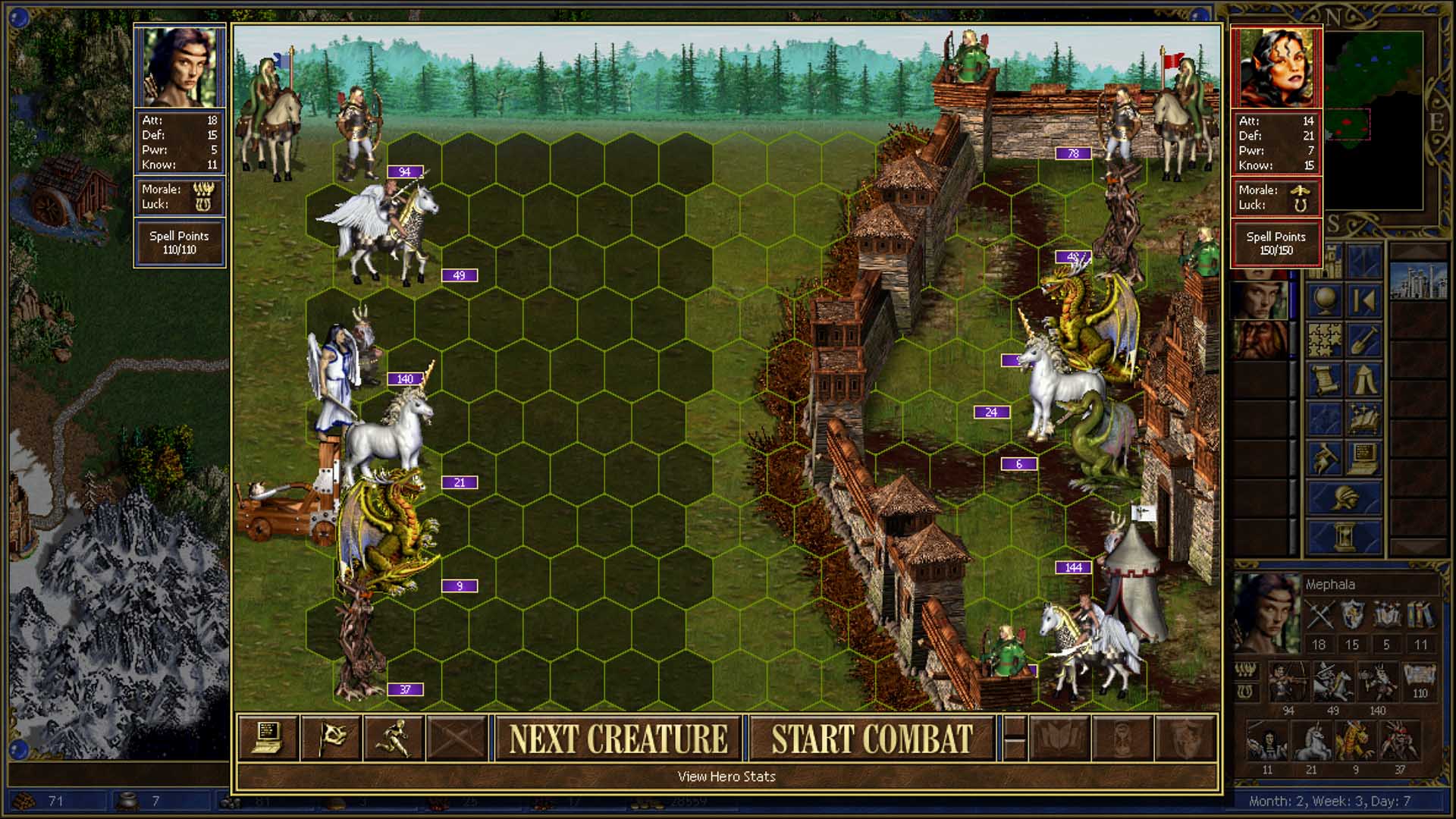 Velice těsný souboj, ani jsem nevěřil, že soupeřův hlavní hrad dobyju, jiná šance tu pro mne ovšem nebyla. Alex hrál random a navolilo mu to mirror - baštu. Asi znechucený předchozími porážkami mu bylo docela jedno, co hraje. Můj plán na hru byl jasný, všude spousta konzervatoří a ty potřebuji určitě vybrat. Nafarmil jsem Mephalu na nějaké ty staty cca 11/11 a začal jednu po druhé vybírat od konce mapy zpět k mému hradu. Pak jsem chtěl vyjet ze svého území a zaútočit na soupeře. Naše hrady byly hodně blízko sebe, chtěl jsem Alexe překvapit s maximálním počtem andělů, co jsem mohl posbírat a slušným hrdinou. Alex se však nenechal zastrašit, přesto, že jsem na staty většinu hry vedl, v poslední chvíli získal artefakty, které vedení obrátili a co víc, nestihl jsem vzít jeho hlavní hrad včas, protože jsem měl tah velký asi jako přerostlý trpaslík s jednou nohou a Alex si dovláčkoval hlavní armádu včetně hrdiny během jednoho tahu zpět, kdy mi nestačily kroky na jeho hrad. Se svými 11cti anděly z konzervatoří jsem si ovšem věřil a Alex se bál vylézt z hradu, takže jsme skončili v mrtvém bodě, kdy já pobíhal v horní části jeho území, blíž mému hradu, abych si vždy mohl doplnit armádu nový týden a on jen seděl v hlavním hradě, takhle to šlo asi 2 týdny, protože mi už docházeli nápady jak pokračovat ve hře, zkusil jsem se mírně vzdálit směrem k art zóně. Alex toho hned využil a vzhledem k tomu, že jeho hrdina se pobyhoval mnohem rychleji než můj přerostlý trpaslík s jednou nohou, vzal mi hlavní hrad během dvou tahů a já s tím nemohl nic dělat. Town portalem, o kterém jsem netušil, pak přeskočil zpět do svého a bylo jasné, co se bude dít dál. Bylo nutné vzchopit se a sebrat odvahu jako nejúspěšnější vojevůdce Alexandr Veliký a konečně zaútočit na Alexovu baštu, jiná šance pro mě nebyla. Alex by dostal další týden dvojnásobnou armádu z obou hradů a já žádnou.