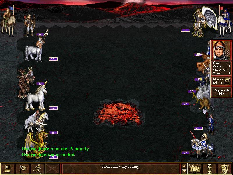dobrá hra trošku jsem si věřil ve statech a v army ze začátku jsem nestratil vubec žádnou jednotku až v utopii 50 lučišníku a asi 20 gryfynu jinak nic soupeř měl staty skoro stejný jak já skoro byl sem lepší ale jde o to že jsem si nestihl vylepšit 3 angely prostě soupeř má opět kliku a ze začátku měl hrad navíc to taky rozhodlo ach jo