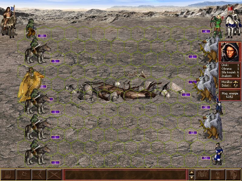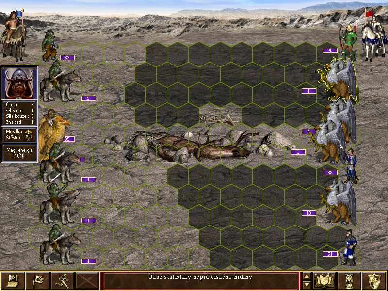 No emoce mluví z pagiho:-) Ikdyby s emu povedlo utect, utekl by s 12 lucistniky, jinak mel vse co vidíte dead a já bych měl naopak vše krom 6 ptáků a 20 strelců a v hradu zbytek army, vcetne behemotu a cyclopů (crystalky od 3 dne)