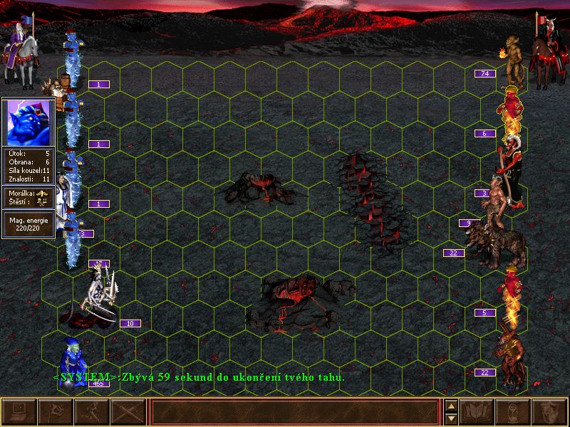 Gremlini jsou ale zabijáci se správným okouzlením:-)Zbytek army mi sebral MOR:-D No...Měl jsem botky a rukavice hned druhý týden a to se pak hraje:-)A v boji mass haste slow vzkříšení.A pro jistotu ještě Town portal:-))Nebylo co řešit.-)