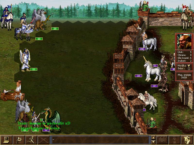 Nejlepší hra. Utýhle hry jsem se potil jako prase, Xd a zárověň jsem tuhle hru měl mýt prohranou, z 1 boje, jak se mti napadl hrad, a vykapituloval, tak to měl být konec, ale pak si mi nějak obsadil i můj hrad, a já měl jenom kobku, no brali sme si to navzájem. Já vyhrál díky konzervatořím, našel sem jich asi 5 nely 6, takže angelu bylo hodně, no tahle hra byla super, a byla dost dlouha, tys mi tam vyžral všechny pandořiny skřínky, takže sis nasislyl, ale díky moc zahru :)