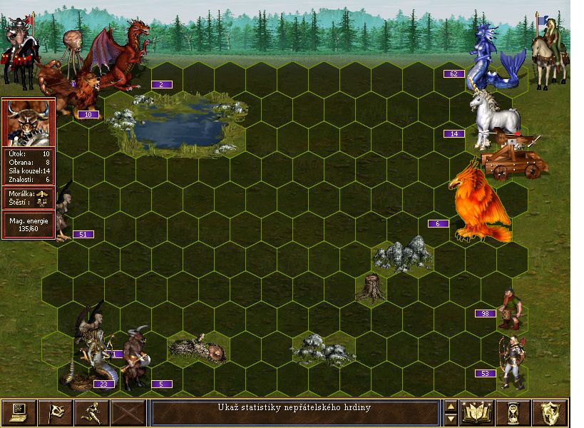 Byla to celkem tezka mapa,plno hradu a silny neutralove. Alex mel vyssi primy protze ja nemel vubec drevo, nastesti me par pandor zachranilo s financema:-D V bitve mel alex retezak..takze pruser. JA mel pouta, ktera mi to zachranila:-) Jinak na tech 100oci pomohla zapomnetlivost:-)